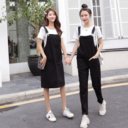 • 宝贝名称: 黑色背带裤女韩版宽松显瘦2019新款夏季女学生姐妹闺蜜装两件套装