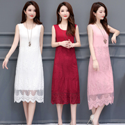 • 宝贝名称: 蕾丝连衣裙女中长款无袖圆领背心吊带内搭打底莫代尔裙子女夏新款