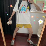 • 宝贝名称: 韩国 ins鬼马可爱少女~夏日休闲小花太阳花彩色字母复古短袖T恤