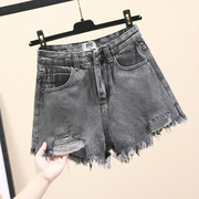 • 宝贝名称: 牛仔短裤女夏2019新款宽松破洞高腰显瘦烟灰色a字毛边阔腿热裤子