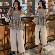 • 宝贝名称: 孕妇夏装套装外出时尚2019夏新款两件套女夏季休闲七分阔腿裤潮妈