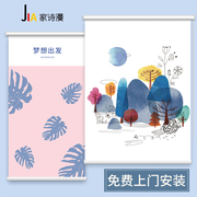 • 宝贝名称: 手拉弹簧卷帘拉珠绳窗帘免打孔安装卷帘画挂画柔纱帘遮光电动电机