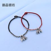 • 宝贝名称: 纯银圆珠蜡绳手工编织足银吉祥镂空小象脚链 本命年红绳 男女款