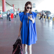 • 宝贝名称: 橙点戚薇明星同款慵懒风休闲飞飞袖连衣裙名族风蓝色度假裙夏新款
