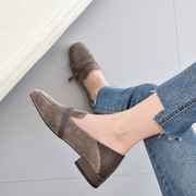 • 宝贝名称: 方头软皮粗跟拼色单鞋女2019新款平底女鞋英伦风小皮鞋中跟乐福鞋