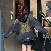 • 宝贝名称: 重工牛仔外套女宽松韩版嘻哈潮ins欧洲站2019镶钻破洞小熊牛仔衣