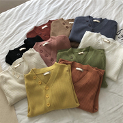 • 宝贝名称: 打底衫女秋冬时尚新款chic风V领一排扣针织衫毛衣长袖修身套头潮