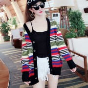 • 宝贝名称: 2019秋冬新款毛衣女慵懒V领彩色条纹可爱小鹿长袖拼色开衫女上衣