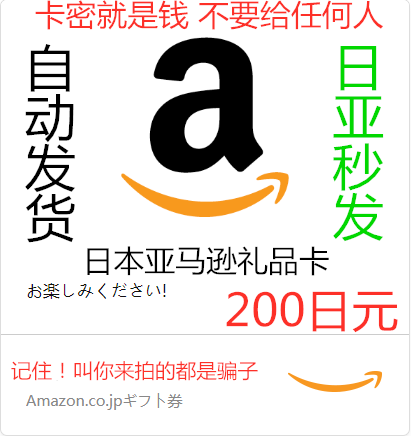 • 宝贝名称: 【自动发货】日本亚马逊礼品卡200日元 日亚礼品卡200日元