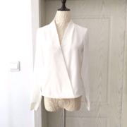• 宝贝名称: 外贸纯初秋新款简约气质ol风白色雪纺立领单扣不规则长袖女装衬衫