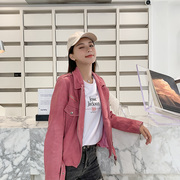 • 宝贝名称: 2019新进口绵羊皮植鞣机车款牛油果绿公主粉修身女皮衣外套