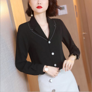 • 宝贝名称: 黑色衬衫女装秋季2019新款通勤职业OL西装领宽松衬衣百搭长袖上衣