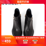 • 宝贝名称: comely/康莉2019冬季新款时尚真皮高跟短靴舒适圆头侧拉链女靴子