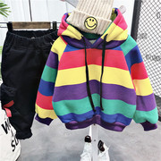 • 宝贝名称: 宝宝秋冬条纹卫衣连帽加绒加厚套头儿童上衣中小童保暖打底衫男童