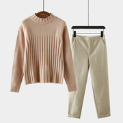 • 宝贝名称: 花丫家 秋冬可盐可甜温柔气质 37715 女装粉色毛衣格子毛呢裤套装