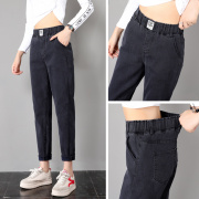 • 宝贝名称: 老爹牛仔裤女高腰九分裤2019新款秋冬加绒宽松紧腰显瘦直筒哈伦裤