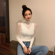 • 宝贝名称: 高领打底衫女秋冬2019新款时尚洋气韩版网纱拼接假两件长袖女上衣