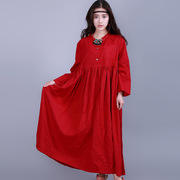• 宝贝名称: 特价款 原创民族风女装新款春装棉麻长袖高腰大摆裙宽松显瘦减龄