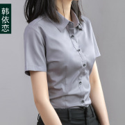 • 宝贝名称: 灰色衬衫女短袖职业夏季寸衫修身气质正装工装工作服纯白棉衬衣