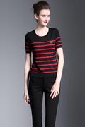 • 宝贝名称: 断码特惠20夏英伦女装圆领修身条纹显瘦纳米天丝薄款针织短袖T恤