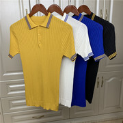 • 宝贝名称: 韩国夏季网红冰丝针织短袖polo衫男韩版潮流修身潮牌日系翻领T恤