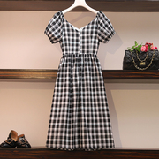 • 宝贝名称: 法式复古显瘦格子长裙V领泡泡袖超仙女森系可盐可甜连衣裙女夏季