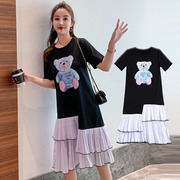 • 宝贝名称: 微胖夏季大码胖mm遮肚卡通小熊钉珠显瘦百褶T恤连衣裙女洋气减龄