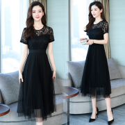 • 宝贝名称: 2020夏季新款赫本风短袖气质显瘦黑色蕾丝拼接网纱中长款连衣裙女