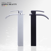 • 宝贝名称: 简约高款酒店公寓台上盆黑色龙头时尚瀑布式出水冷热面盆银色龙头