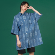 • 宝贝名称: 新款2020年蓝色短袖衬衫女潮牌宽松ins潮复古港味休闲男友风衬衣