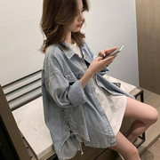 • 宝贝名称: 牛仔衬衫女宽松bf风中长款复古港味外穿开衫外套学生百搭衬衣春秋