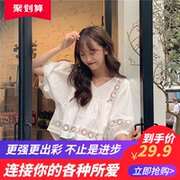 • 宝贝名称: 夏季韩版2020新款ins网红镂空勾花宽松V领泡泡袖洋气短袖衬衣女