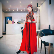 • 宝贝名称: 民族风刺绣连衣裙夏红色复古绣花长裙改良薄款无袖中国风宽松长袍