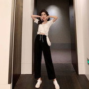 • 宝贝名称: 香港2020新款夏装小香风轻熟套装港味轻熟风两件套复古chic裤装
