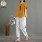 • 宝贝名称: 民族风棉麻套装女2020年夏新款亚麻哈伦裤复古原创苎麻妈妈两件套