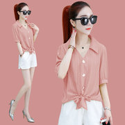 • 宝贝名称: 雪纺衬衫夏装女装2020新款时尚洋气设计感衬衣气质减龄遮肚上衣服