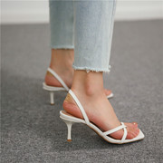 • 宝贝名称: 细带高跟鞋女凉鞋2020新款夏季真皮性感方头一字带细跟夹趾罗马鞋