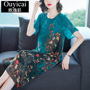 • 宝贝名称: 中老年妈妈真丝桑蚕丝连衣裙夏季2021新款宽松遮肚印花香云纱裙子