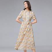 • 宝贝名称: 欧洲站2020夏季新款时尚中长款连衣裙翻领收腰系带几何图形百褶裙
