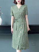 • 宝贝名称: 2020夏季新款短袖雪纺连衣裙女韩版时尚大码宽松单排扣过膝波点裙