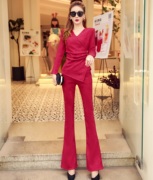 • 宝贝名称: 时尚鹿皮绒套装裤2020秋冬不规则显瘦上衣高腰修身微喇裤两件套女