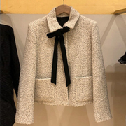 • 宝贝名称: M家 20秋冬法式甜美小香风粗花呢撞色系带短外套小披风