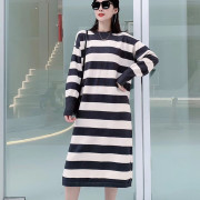 • 宝贝名称: 2020秋冬新款韩版宽松显瘦内搭圆领下摆开叉条纹过膝长款毛衣裙女