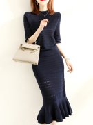 • 宝贝名称: OLYFOU秋季新款镂空鱼尾裙优雅连衣裙女装两件套中长款针织套装裙