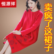 • 宝贝名称: 恒源祥羊毛衫女宽松大码毛衣连衣裙中长款针织打底衫2020秋冬新款