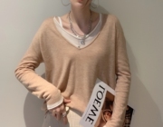 • 宝贝名称: 叠穿的时髦!慵懒洋气V领上衣假两件针织衫宽松羊毛打底衫毛衣女