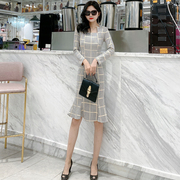 • 宝贝名称: 2020欧美气质修身显瘦礼服方领长袖格子鹿皮绒高腰中长裙子鱼尾裙