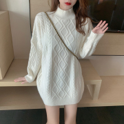 • 宝贝名称: 半高领毛衣女秋冬外穿宽松慵懒风螺纹领套头中长款麻花针织上衣潮