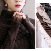 • 宝贝名称: 光泽奶油质感显瘦弹力坑条欧根纱木耳边夹闪葱针织衫打底