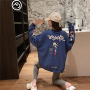 • 宝贝名称: 潮牌卡通蓝色圆领无帽卫衣女加绒加厚秋冬宽松韩版中长款外套ins